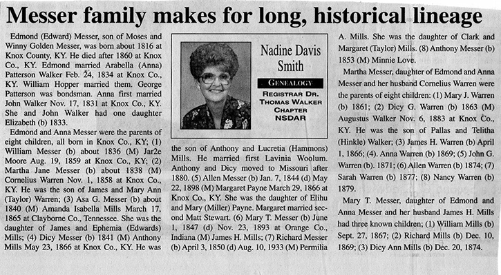 Edmond Messer b. abt. 1816 d. after 1860 m. Arabella Patterson. Son of Moses Messer and Winny Golden