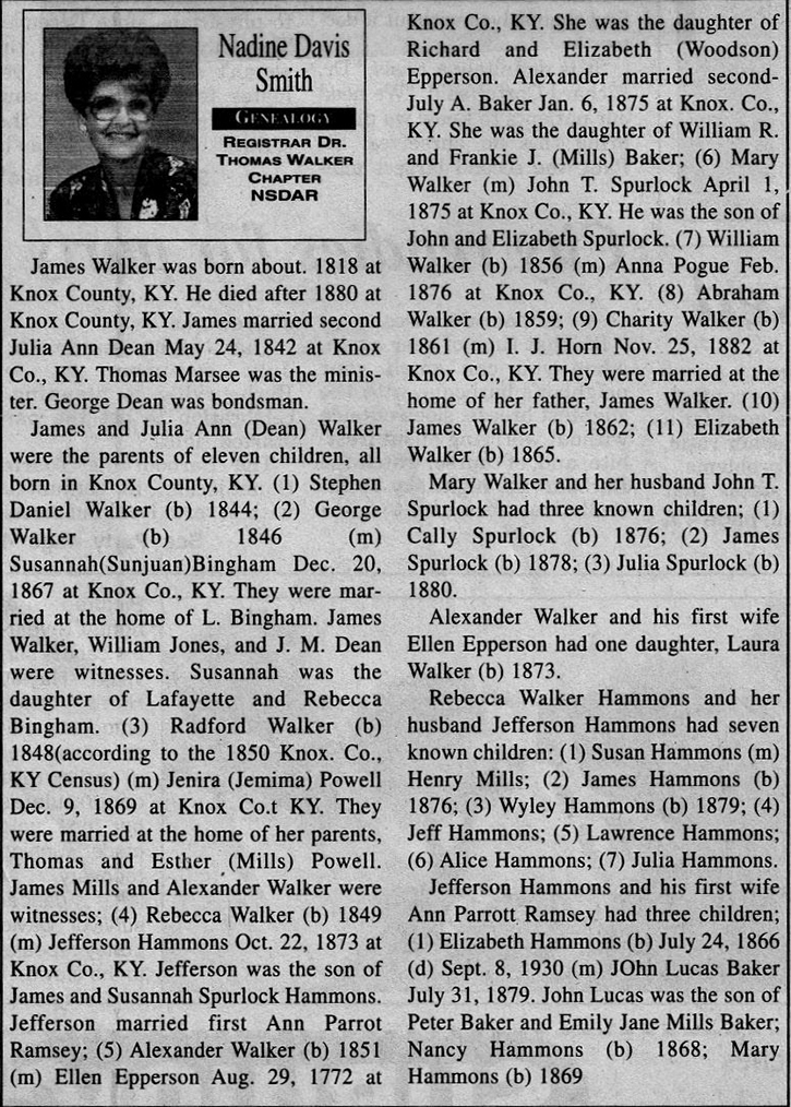 James Walker b. abt. 1818 d. after 1880 m. 1st unknown, 2nd Julia Ann Dean