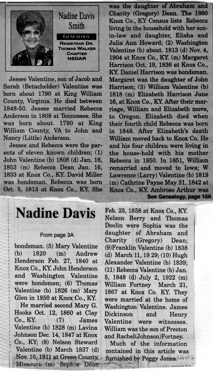 Jessee Valentine b. abt. 1790 d. abt. 1848 m. Rebecca Anderson. Son of Jacob Valentine and Sarah Betachelder