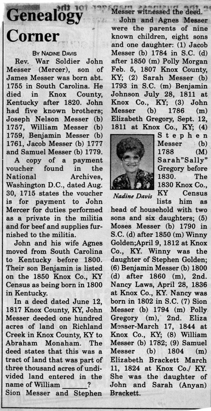 Revolutionary War Soldier John Messer b. 1755 d. after 1820