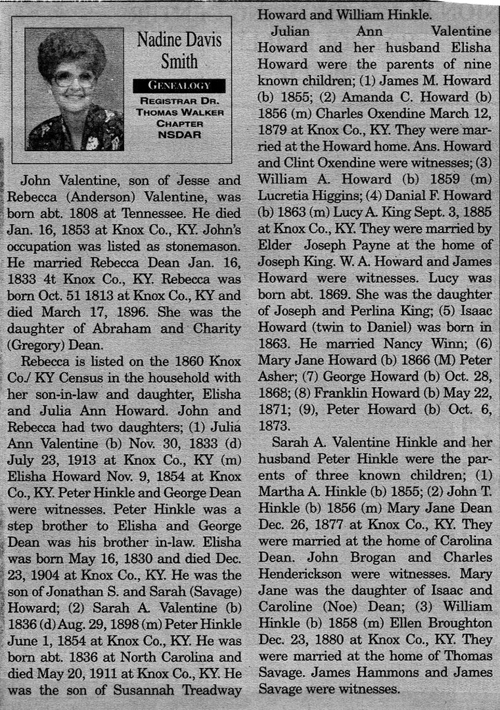 Nadine Davis Smith's Genealogy Columns