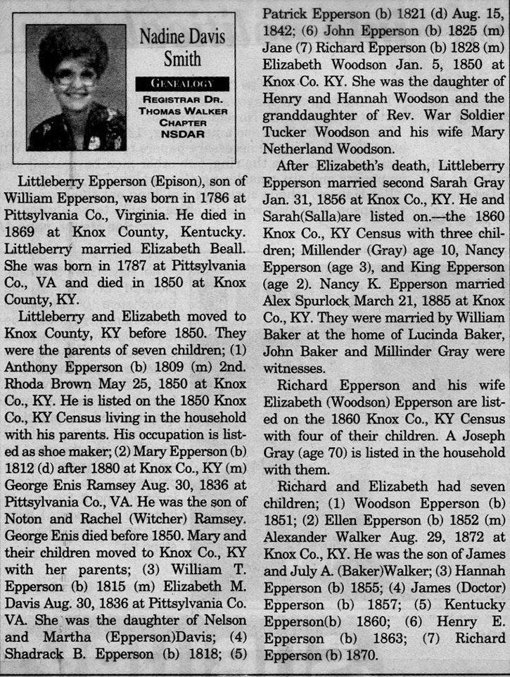 Littleberry Epperson b. abt 1786 d. 1869 m. Elizabeth Beall