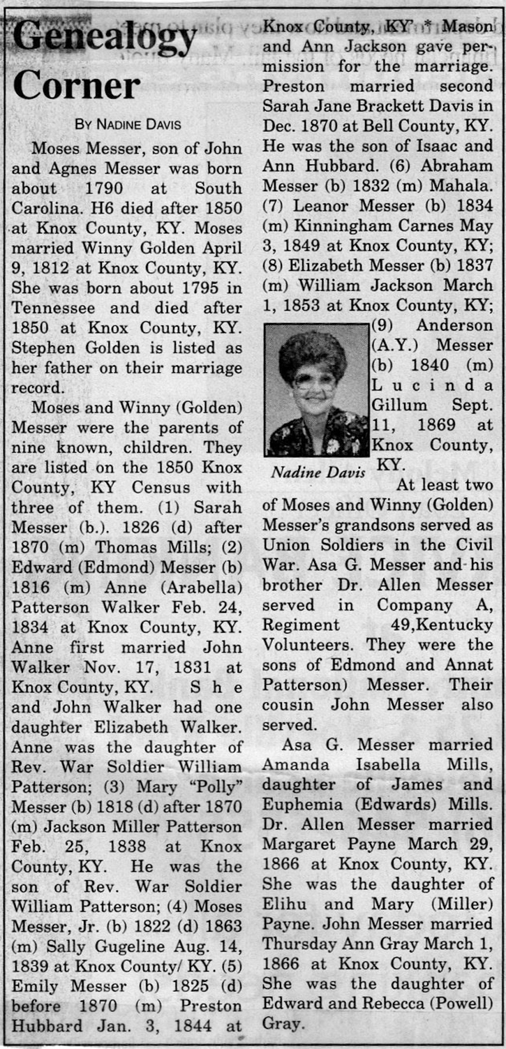 Moses Messer b. abt 1790 d. after 1850 m. Winney Golden