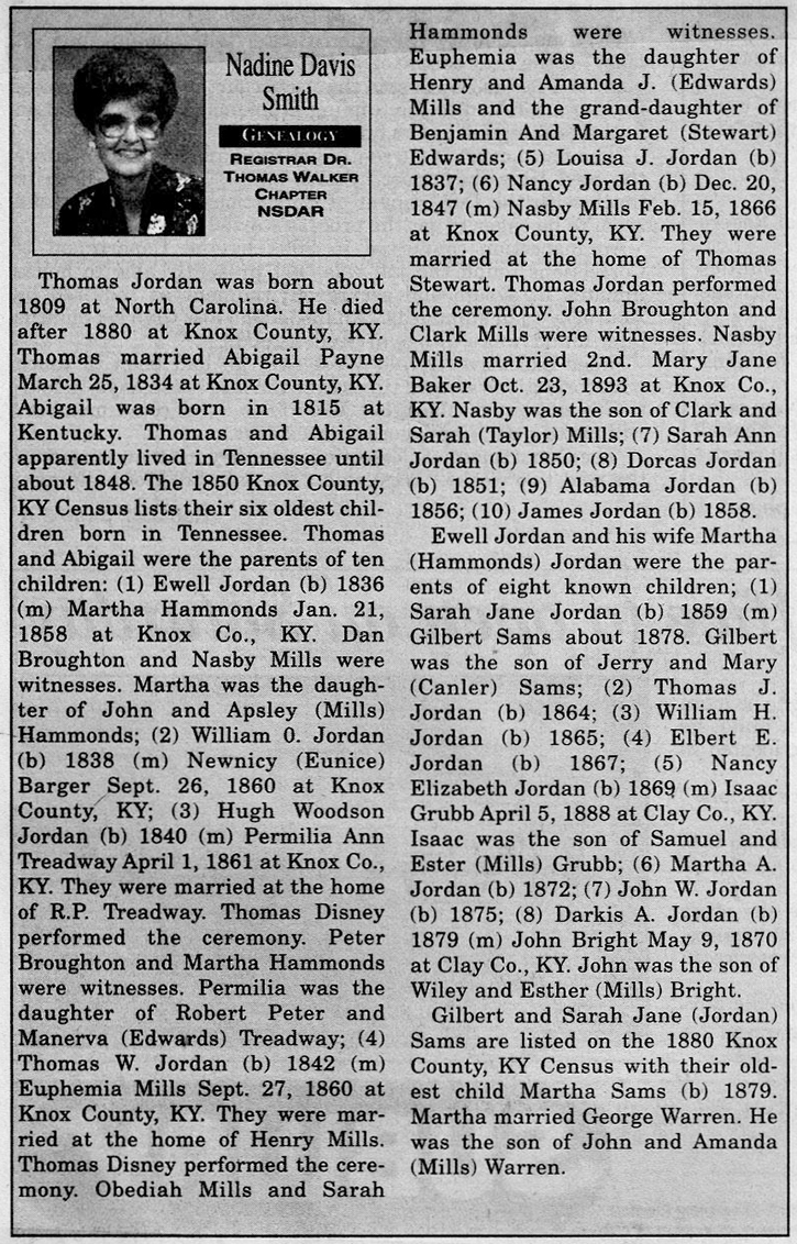 Thomas Jordan b. abt. 1809 d. after 1880 m. Abigail Payne.