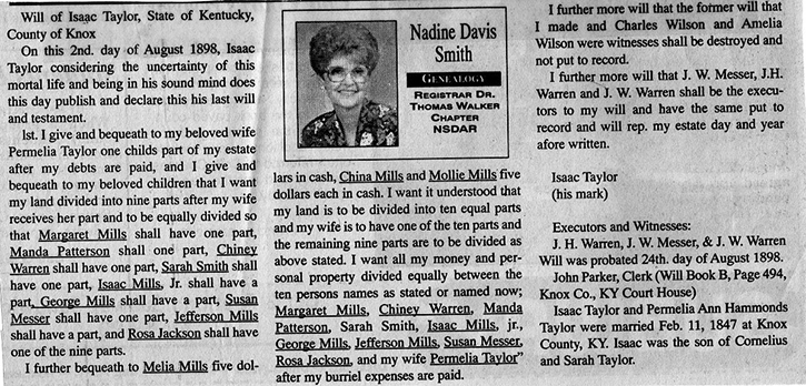 Nadine Davis Smith's Genealogy Columns