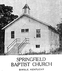 History, Records and Photographs of Springfield Baptist Church located in Bimble, Kentucky.