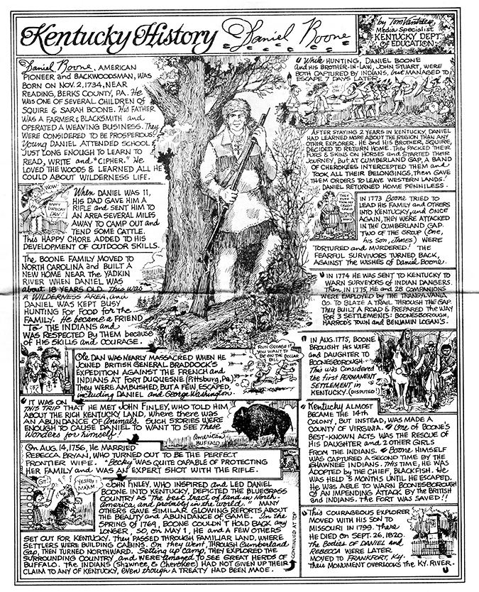 Here's a concise history of Daniel Boone for all our festival-goers. It was published in the November 1984 edition of the "Ed News" by the Kentucky Department of Education. Media specialist Tom Vantreese created the page.