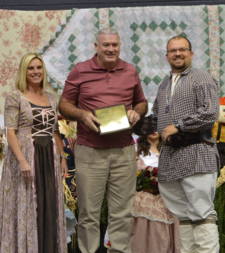 In photo at left, Doug Bargo is in the center. The presentation was made by the Junior Woman's Study Club's Tonya Castle, left, and Boone Festival president Travis Carmack.